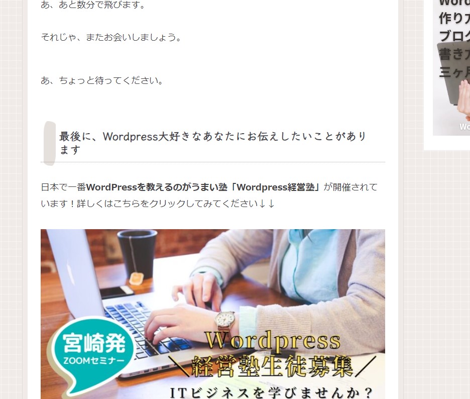 あなたももしかしたらボクのこのブログ記事を読んで、流れでWordPress経営塾の案内サイトに飛んだことがあるかも知れません。