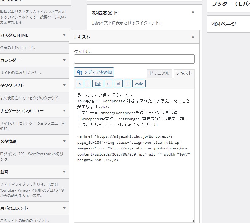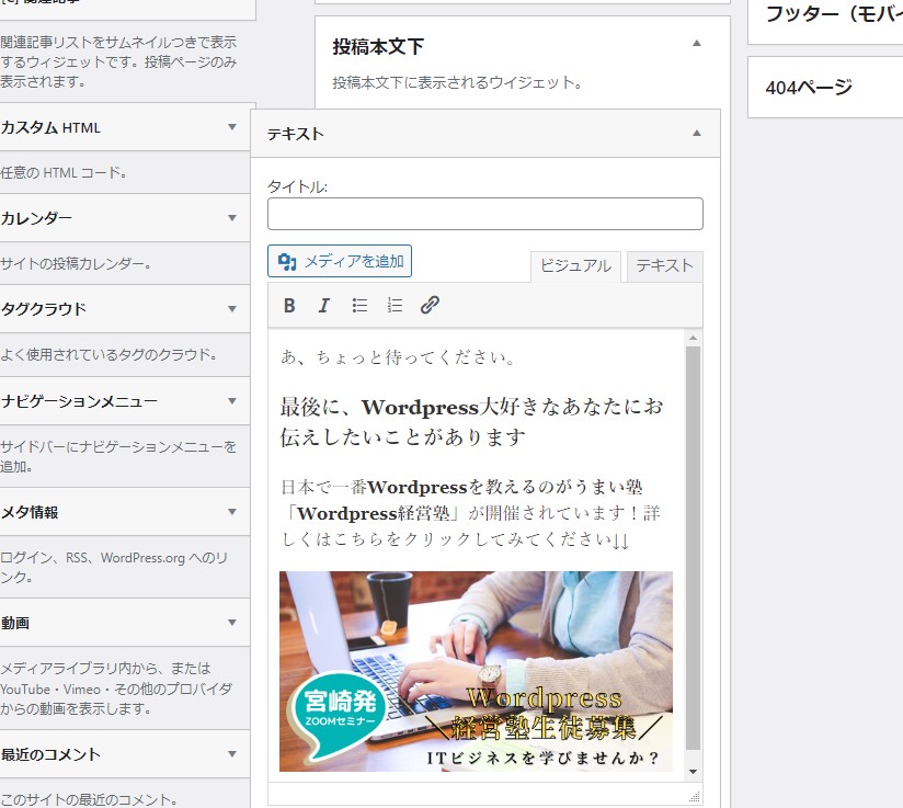 毎回同じ文章は、WordPressでウィジェットを活用して楽しましょう。